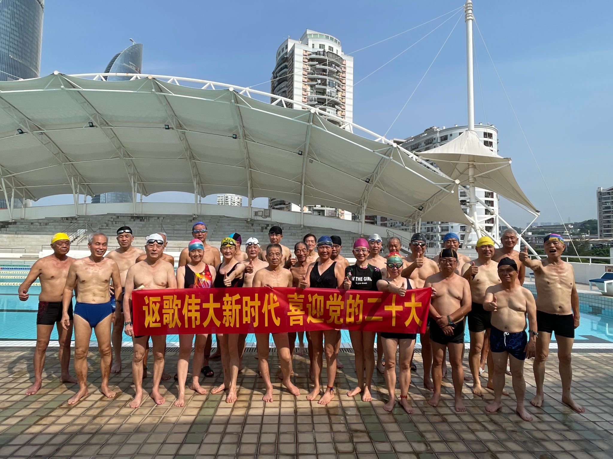 为庆祝中国共产党成立101周年,喜迎党的二十大胜利召开,丰富老年人文体生活,促进全民健身运动,7月15日上午,由离退休工作部(处)主办、老年人体育协会承办的厦门大学第十三届老年人游泳展示活动在王清明游泳馆举行。